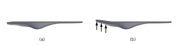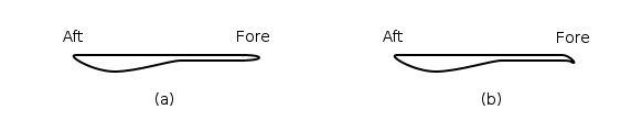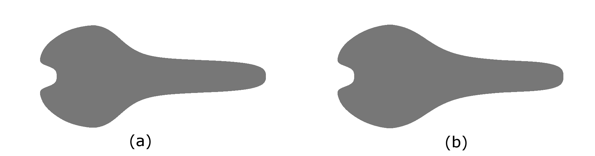 The rear of the saddle can be flat (a) or have a slope added (b). Adding a slope may help keep the body in position while pedaling instead of slipping backwards.